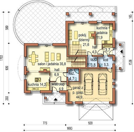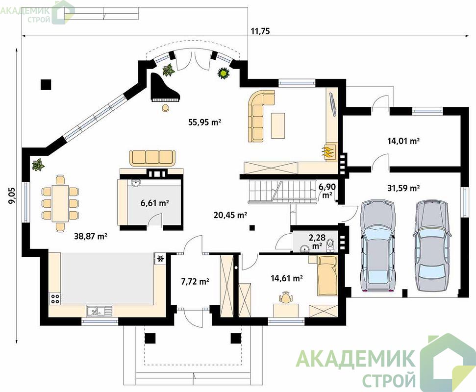 Двухэтажный дом площадью 265 м² с пятью комнатами и четырьмя санузлами рассчитан на большую семью. Гараж на две машины особенно удобен для владельцев нескольких авто. Просторные помещения позволяют удобно зонировать пространство. Дом из газобетона обеспечивает надежность и теплоГарантии: 16 лет гарантии