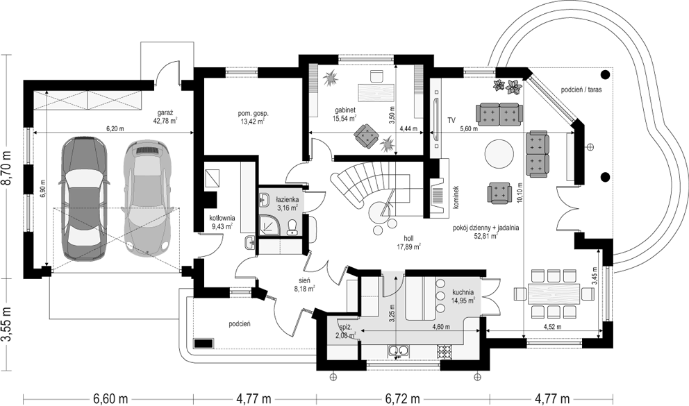 - Площадь кровли: 348,35 м2