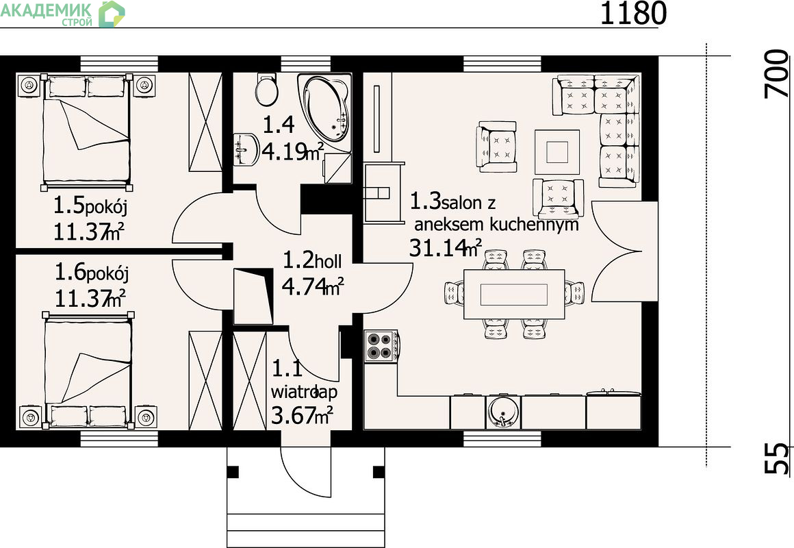 Проект одноэтажного дома Дом id-55090