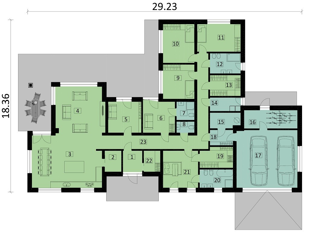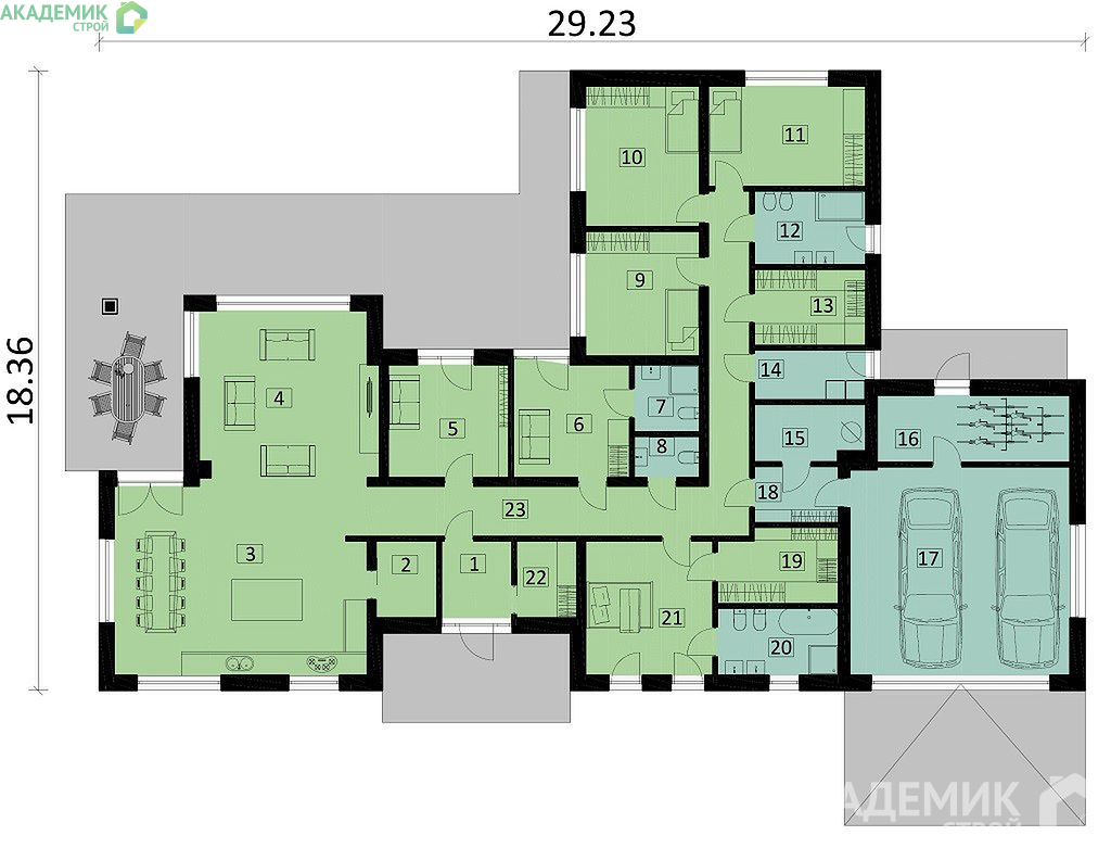 Жильё с гибкой планировкой, позволяющей легко адаптировать пространство. 357 м² — метраж, с которым легко жить. Благодаря 231 м² можно реализовать все бытовые задачи с комфортом. Много жильцов — не проблема: 4 санузла. В доме предусмотрено 5 спален, что важно для комфорта. Конструкция из газобетона обеспечивает прочность и долговечность. металлочерепица придаёт дому выразительность и надёжность.Гарантии: 16 лет гарантии