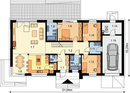 Просторный дом площадью 145 м² рассчитан на три комнаты и три санузла. Гараж на одну машину обеспечивает удобство для владельцев автомобилей. Два этажа позволяют грамотно разделить жилые и хозяйственные зоны. Такой дом станет отличным выбором для семьи среднего размераГарантии: 16 лет гарантии