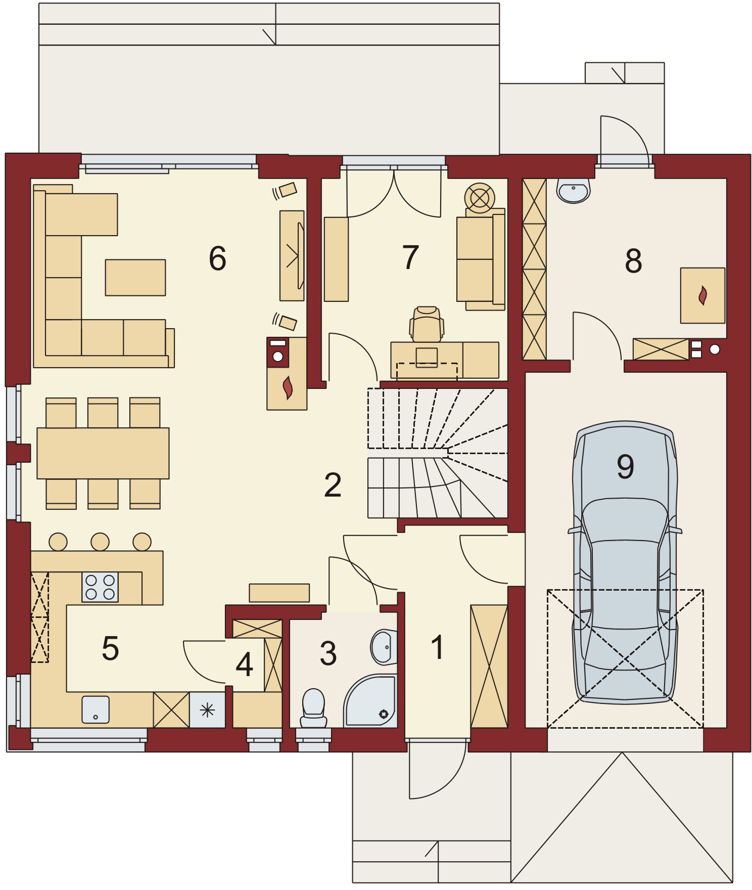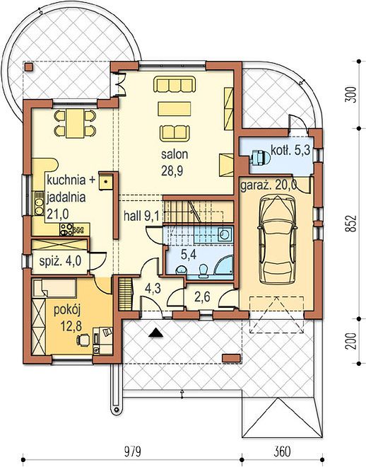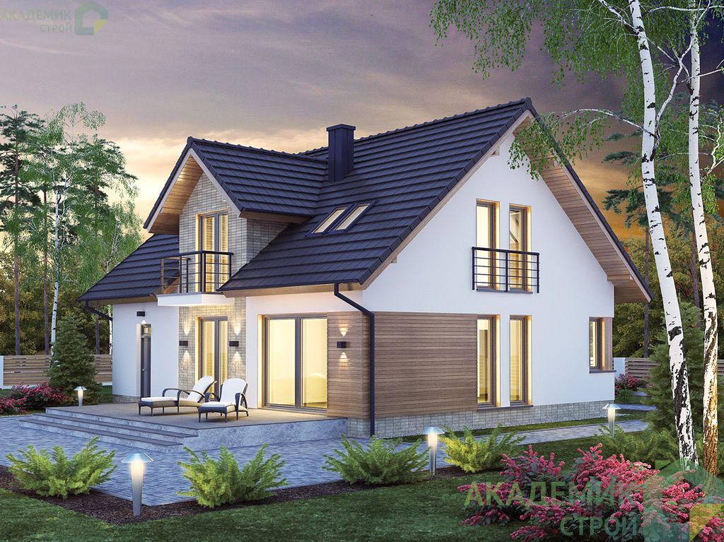 Проект двухэтажного дома Дом из газоблоков 1 этаж + мансарда / 86 кв. м