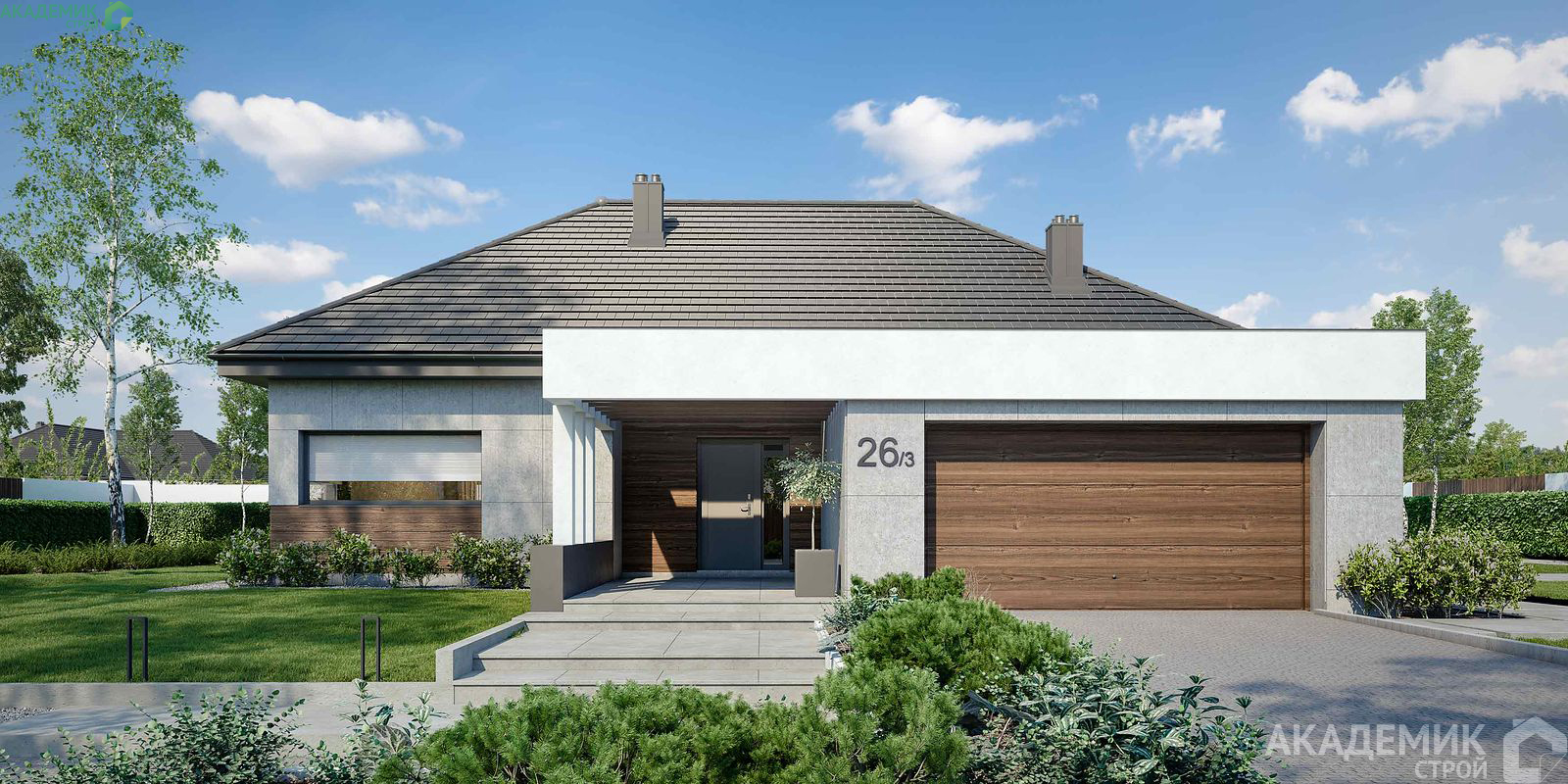 Одноэтажный дом площадью 165 м² с четырьмя комнатами и двумя санузлами станет отличным выбором для семьи из 4-5 человек. Гараж на две машины добавляет практичности для автомобилистов. Просторная гостиная и кухня делают дом уютным и функциональным. Современные материалы обеспечивают долговечность и комфорт.Гарантии: 16 лет гарантии