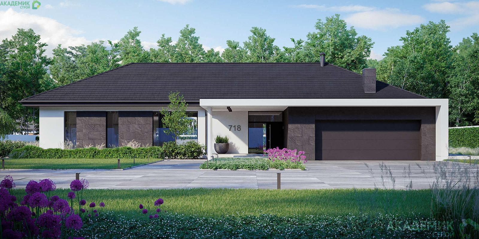 Впечатляющий одноэтажный дом площадью 447 м² рассчитан на пять комнат и три санузла. Гараж на две машины добавляет практичности проекту. Просторные помещения позволяют реализовать любые дизайнерские идеи, а большая кухня-гостиная станет центром семейной жизни. Такой дом подойдёт для большой семьи, ценящей масштаб и комфорт.Гарантии: 16 лет гарантии