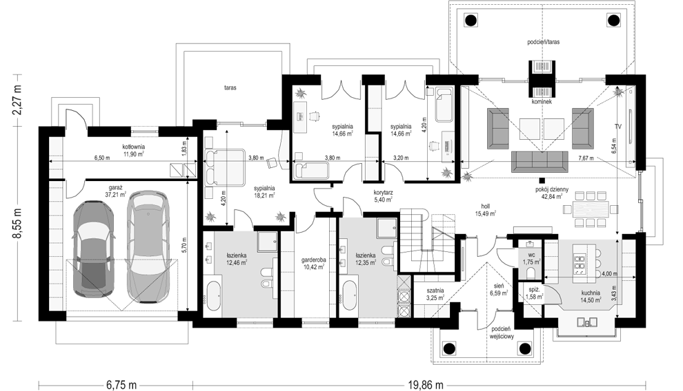 - Площадь кровли: 396,32 м2