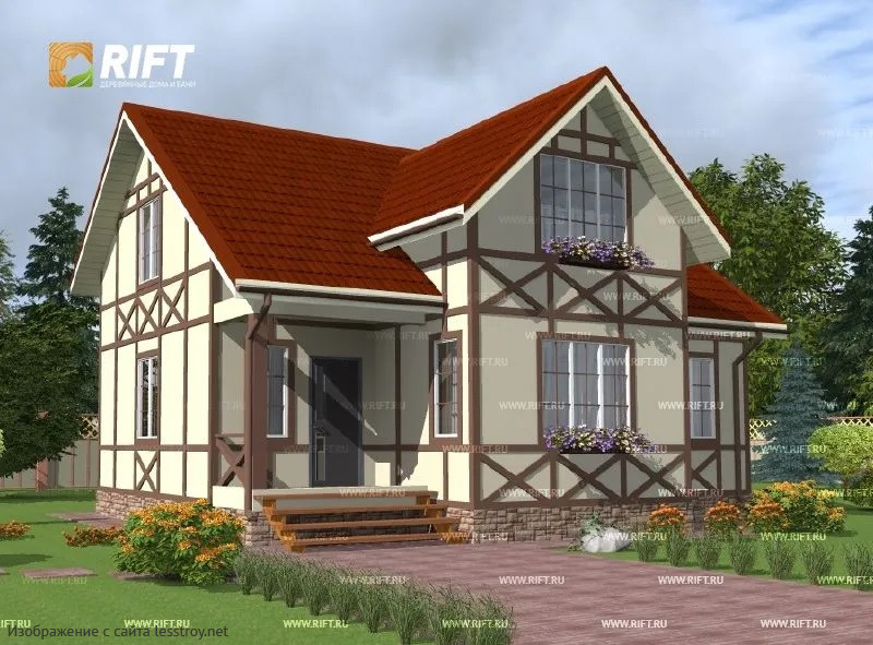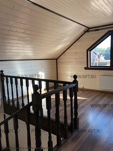 Просторный бревенчатый дом площадью 135 м² с четырьмя спальнями идеален для семьи. Ондулин на кровле гармонично дополняет его облик.Характеристики