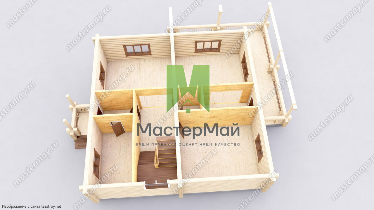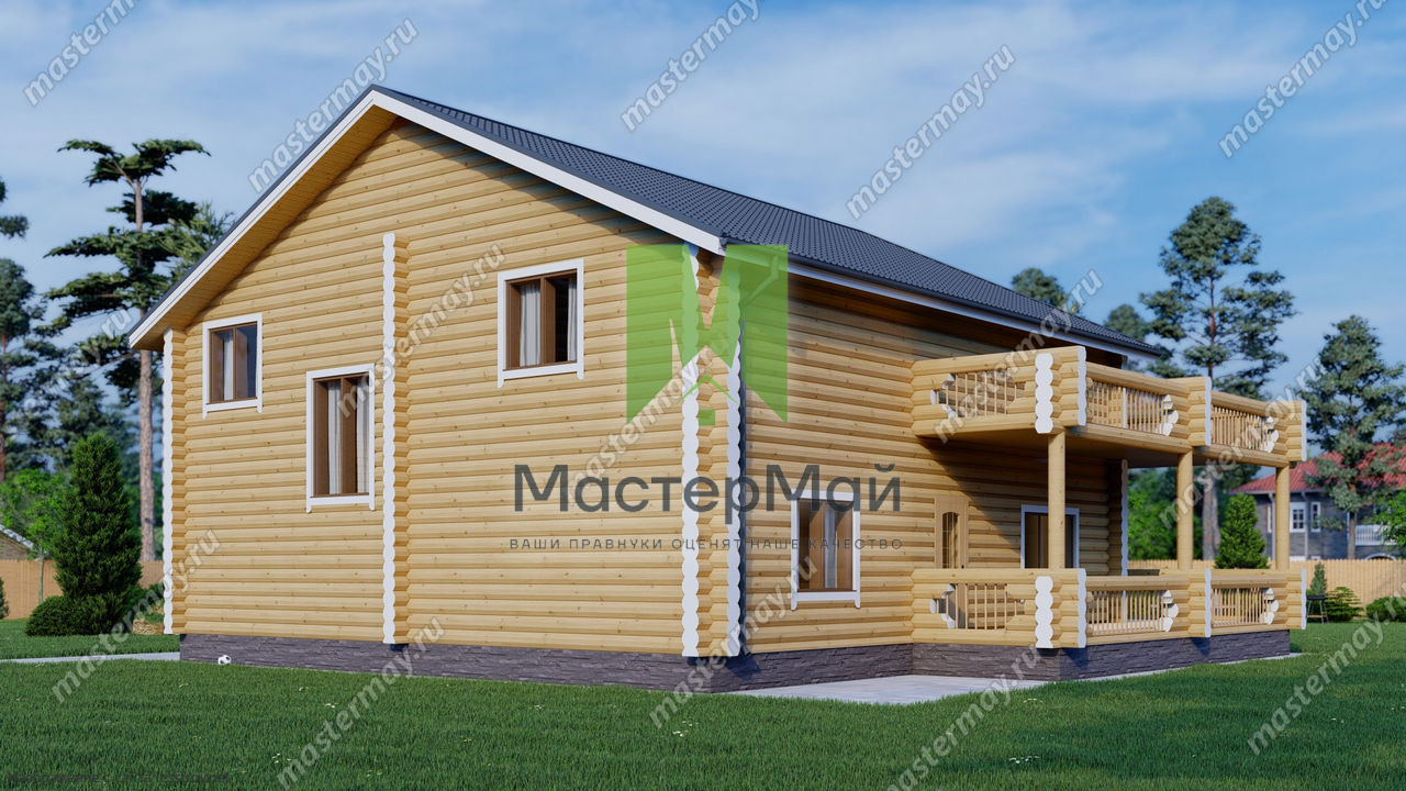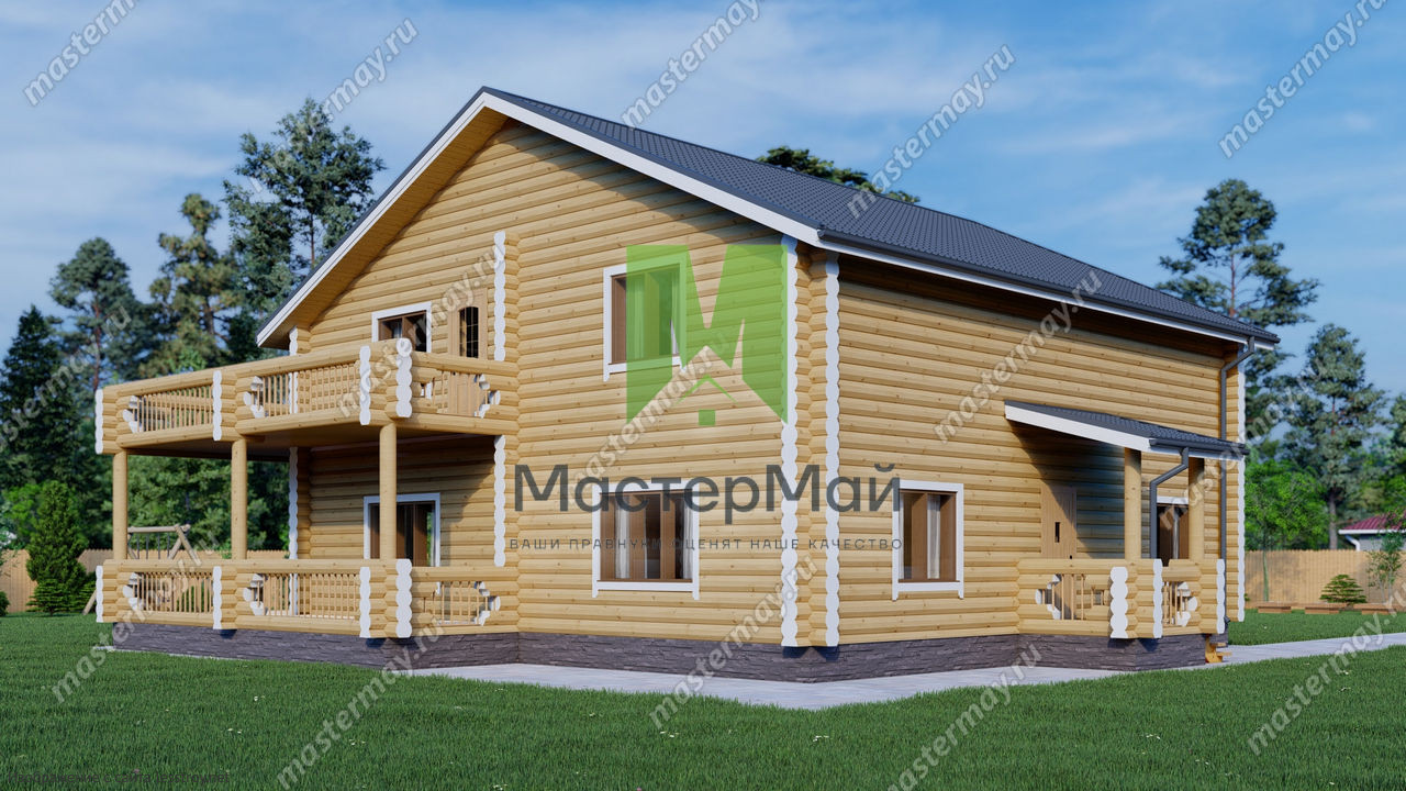 Проект двухэтажного дома Дом из бревна по проекту «Гармония»