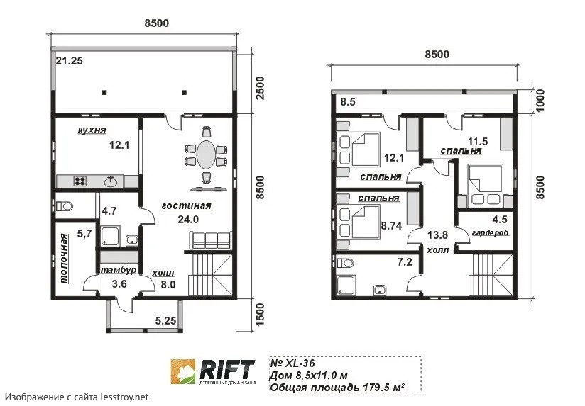 Двухэтажный дом площадью 179 м² из оцилиндрованного бревна в финском стиле — это гармония дизайна и функциональности. Три спальни и просторные помещения делают его комфортным для жизни. Надежный и стильный вариант для загородного дома.Характеристики