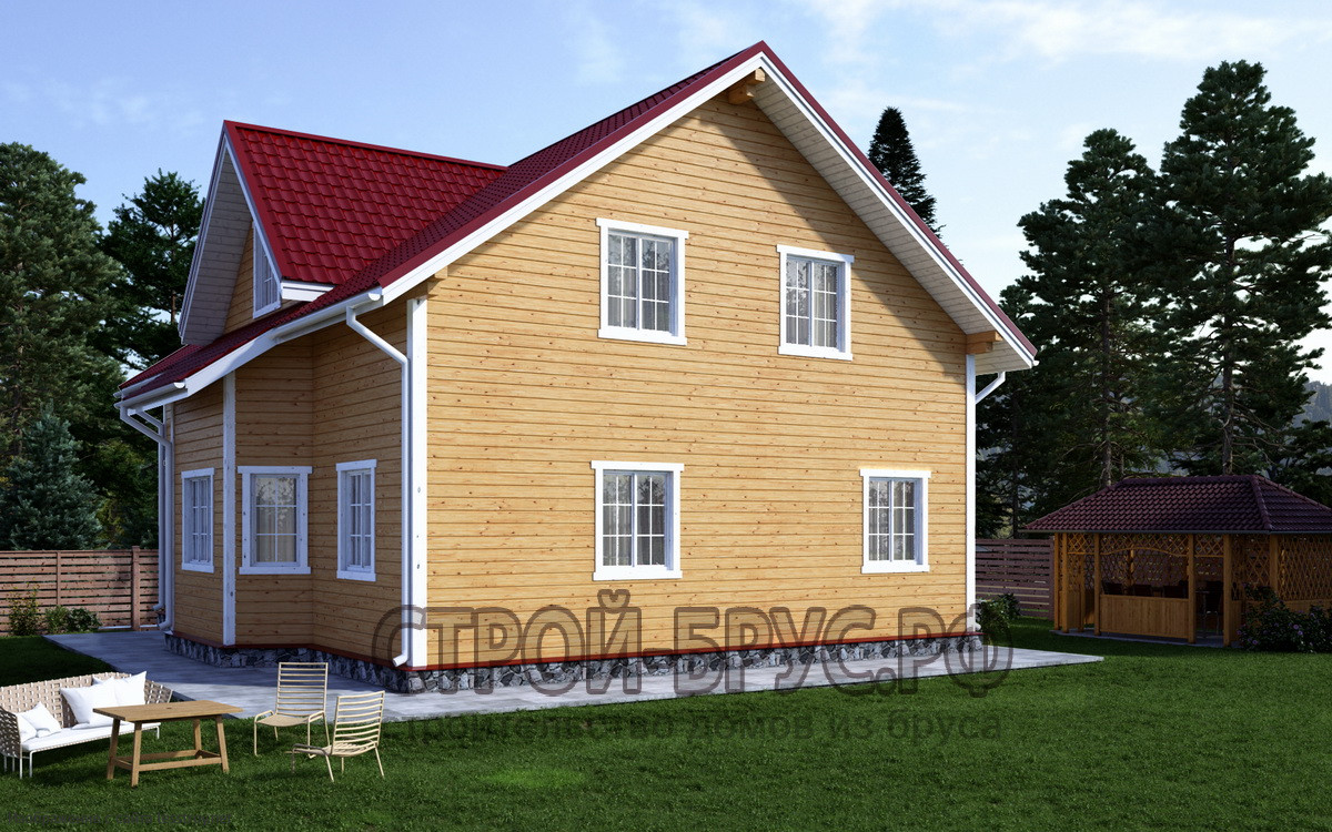 Большой дом из бруса площадью 185 м² с четырьмя спальнями идеален для большой семьи. Один этаж и рубероидная кровля обеспечивают простор и уют. Натуральное дерево создает теплую атмосферу. Проект №136 воплощает традиции русского стиля.Характеристики