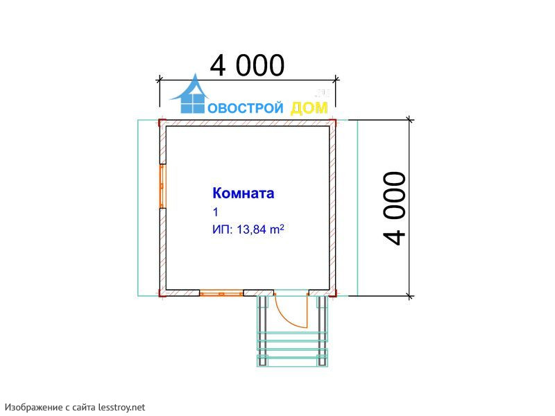 Проект одноэтажного дома ДОМ ИЗ БРУСА 4 НА 4 ОДНОЭТАЖНЫЙ