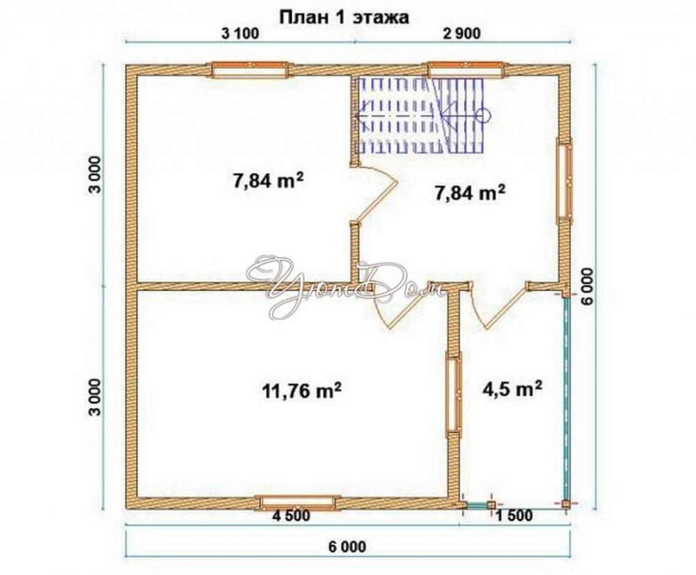 Проект одноэтажного дома Дом из бруса 6х6 - Чеховский