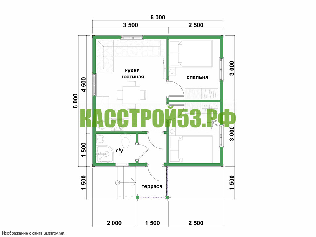 Проект одноэтажного дома Дом из бруса 6х6 ДБ10