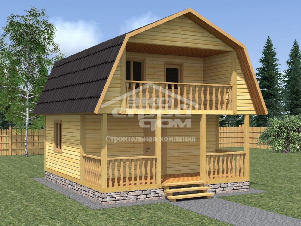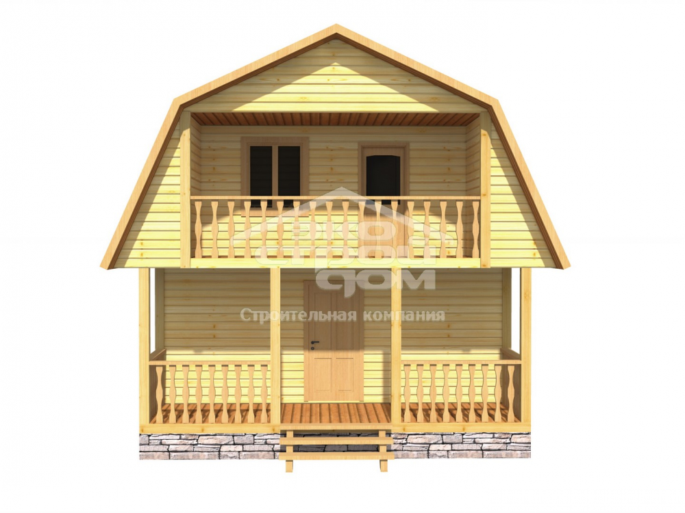 Проект двухэтажного дома Дом из бруса 6х7 с террасой балконом и санузлом