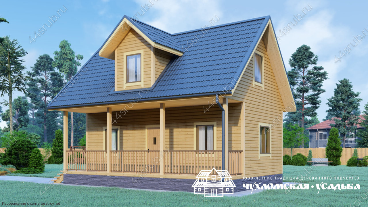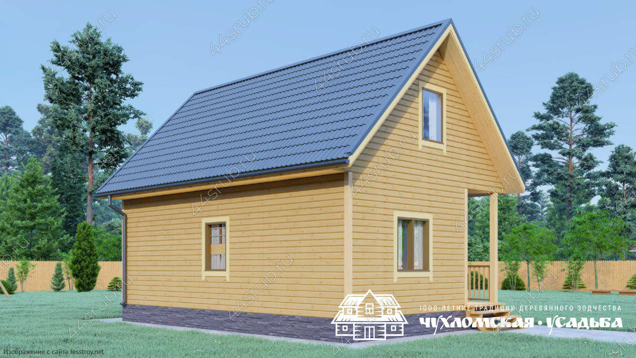 Проект одноэтажного дома Дом из бруса 6х8 по проекту Березка с кукушкой на мансарде