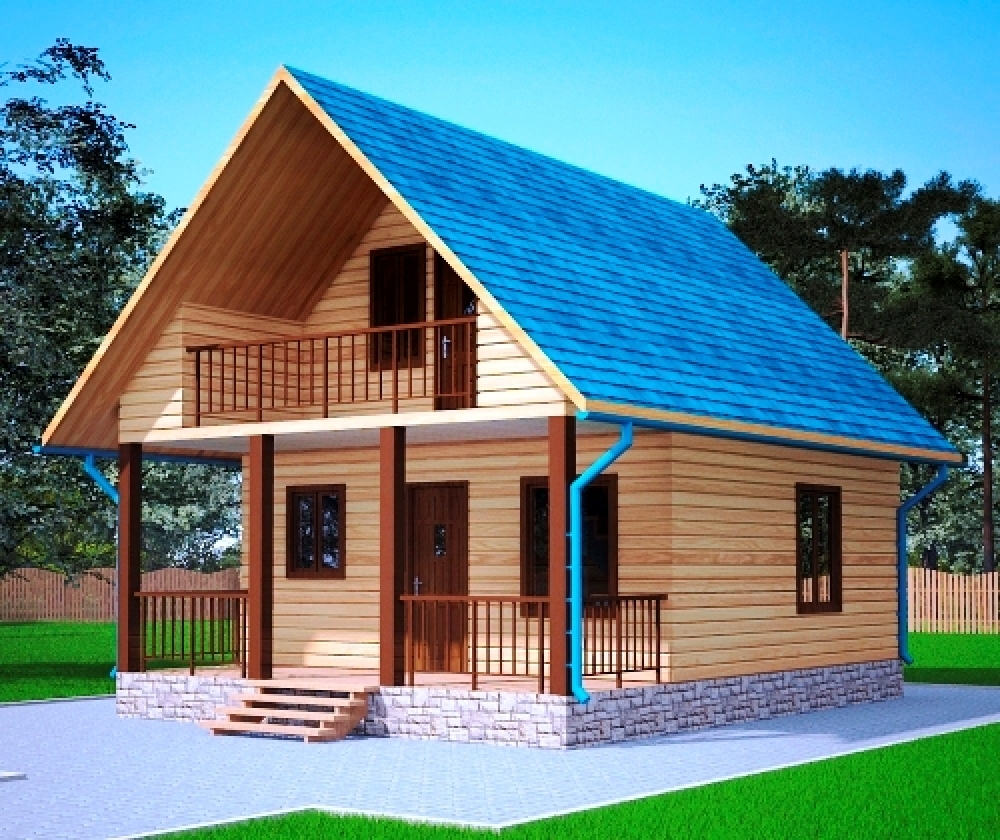 Проект двухэтажного дома Дом из бруса 6х8 с террасой и балконом (Новгород)