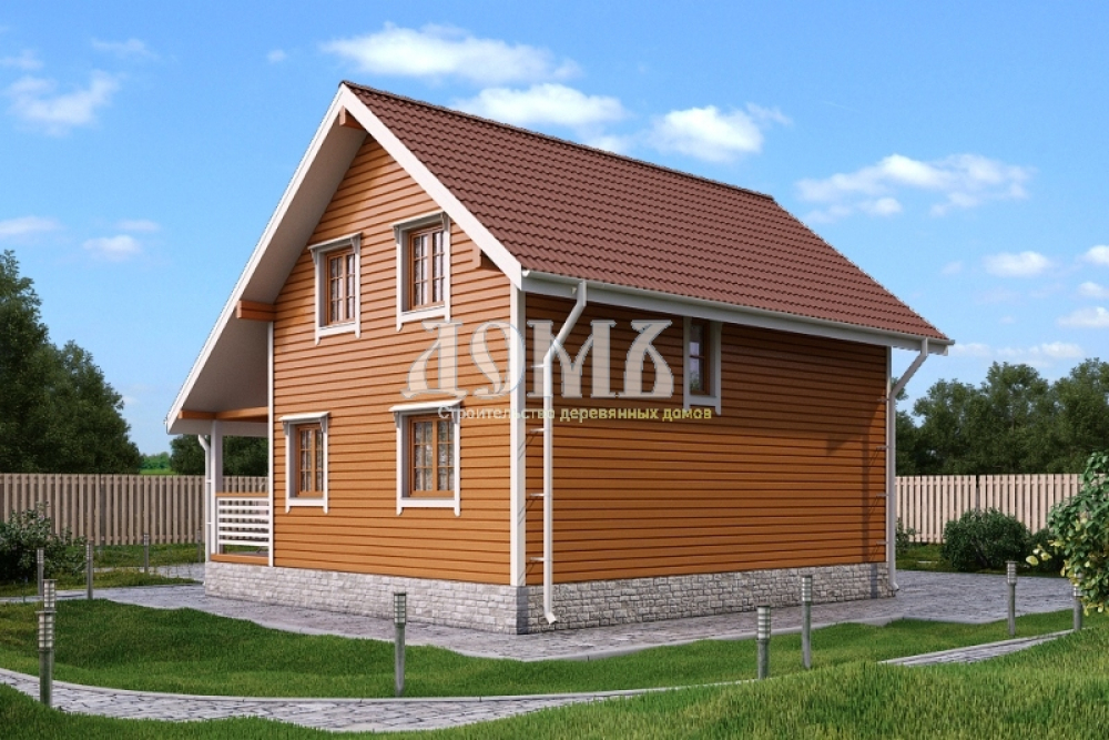 Проект двухэтажного дома Дом 6х8 м с мансардной крышей и кухней-гостиной