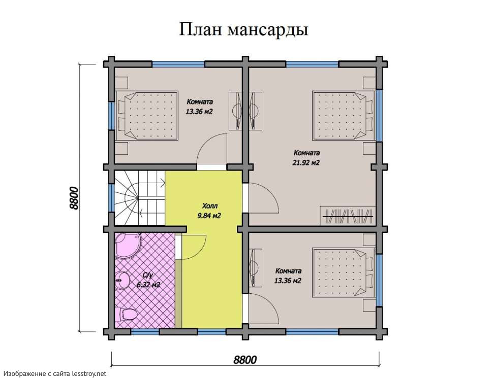 Проект двухэтажного дома Дом из бруса 9х9 ДБ-88