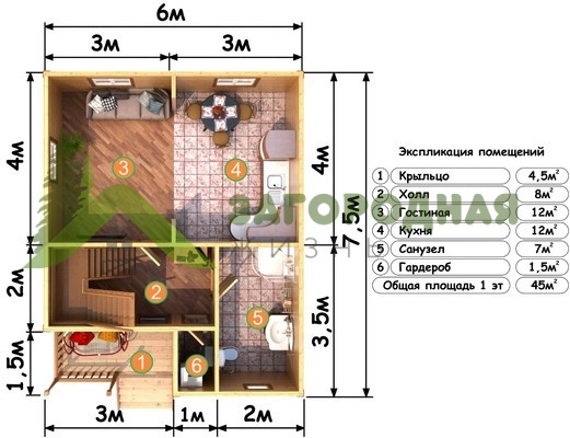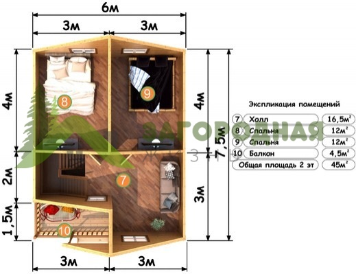Проект двухэтажного дома Дом из бруса № Б15-90 6х7,5