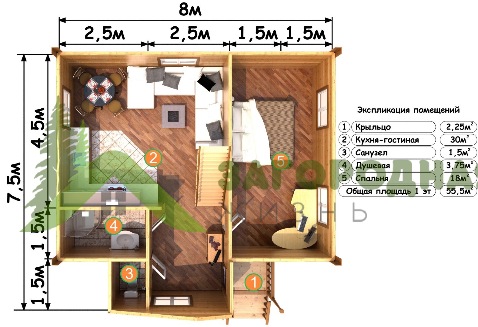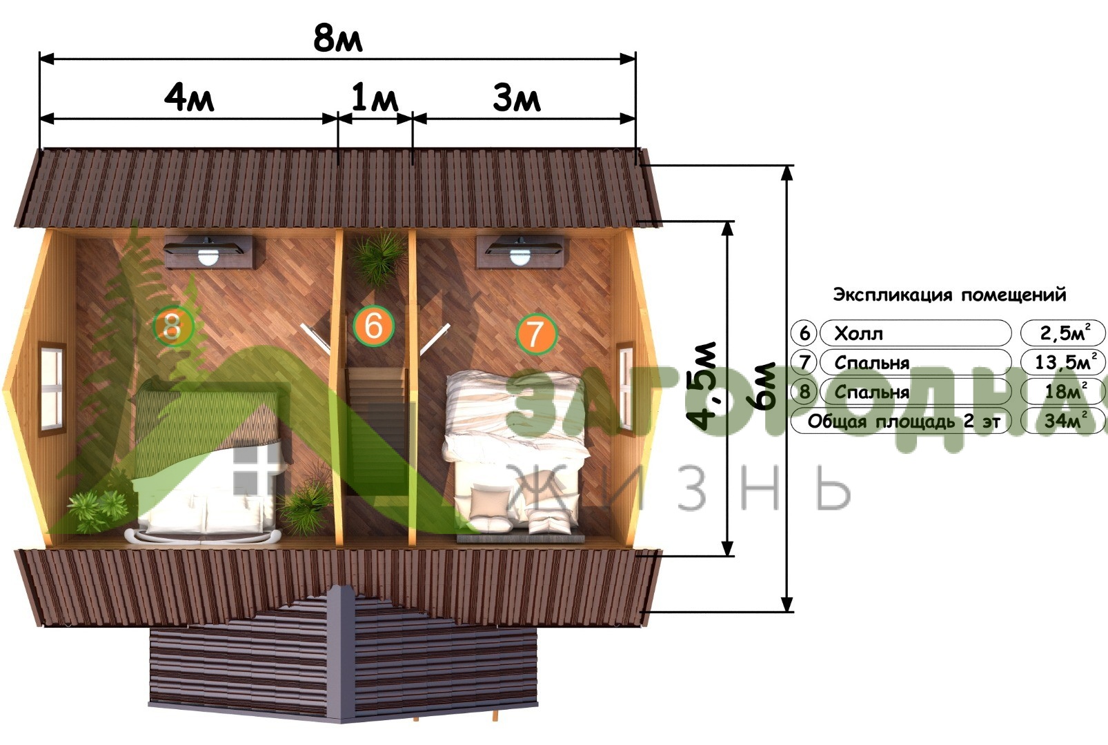 Проект двухэтажного дома Дом из бруса № Б20-89,5 8х7,5