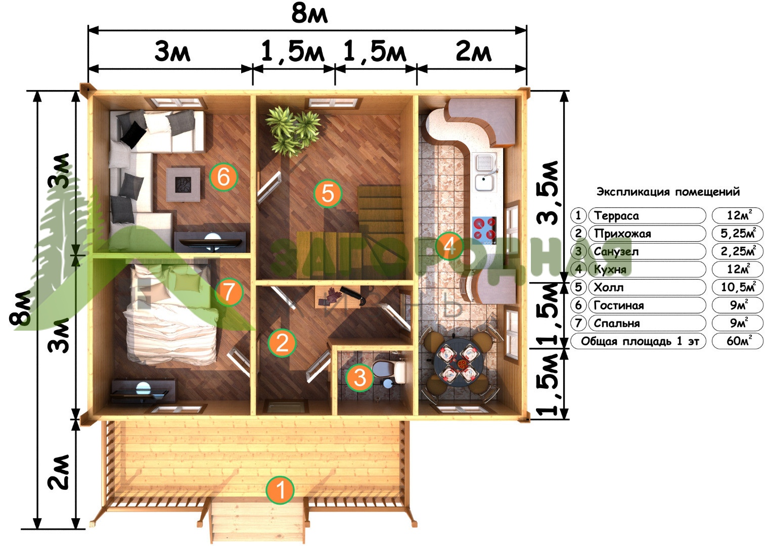- Общая площадь: 80 м2