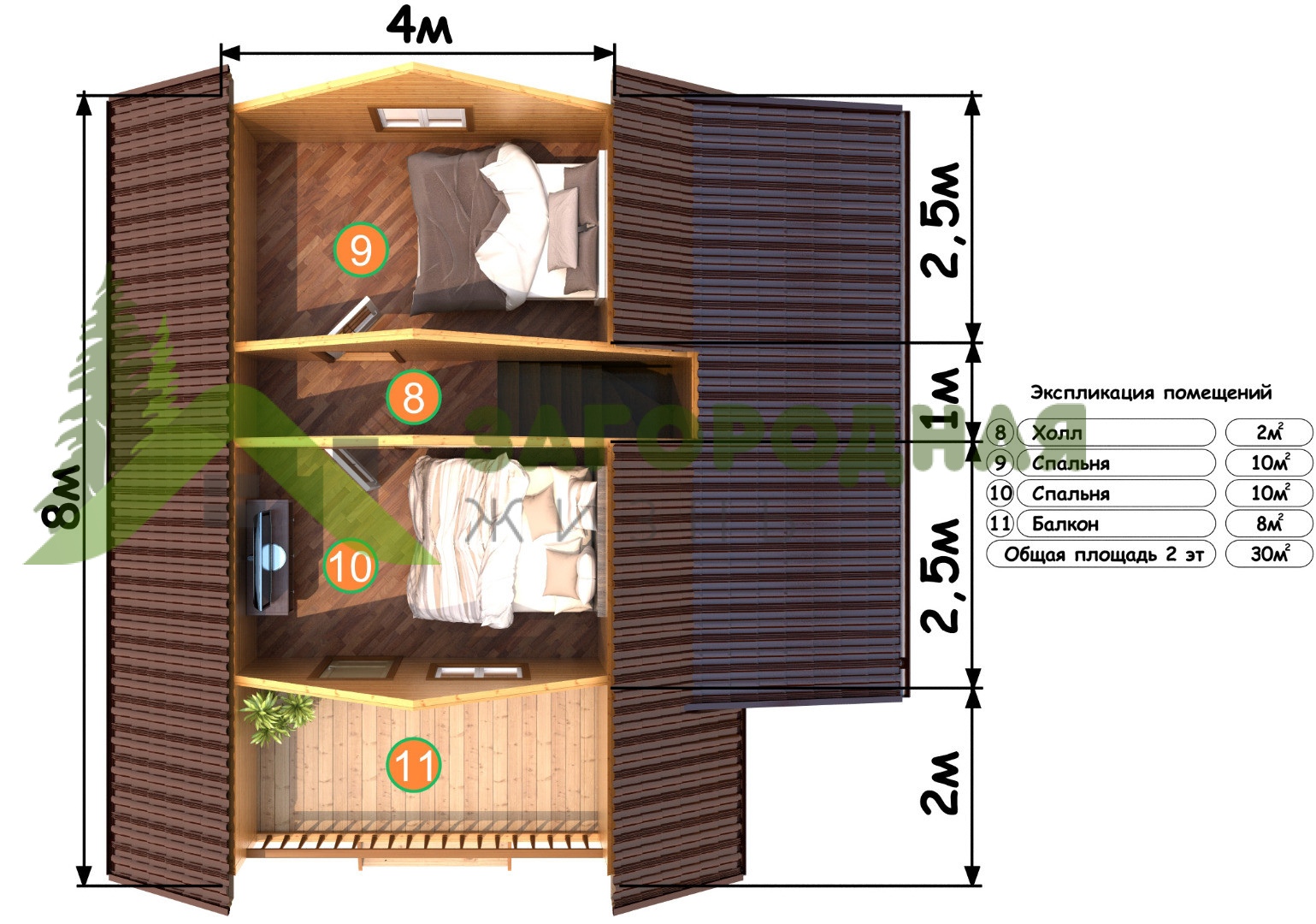 - Тип кровли: Дома с двускатной крышей