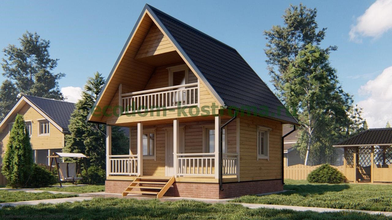 Уютный дом площадью 55 м² в стиле Шале из строганного бруса создает атмосферу уединения. Одна спальня и два этажа делают его компактным и удобным. Брус как материал стен обеспечивает тепло и уют. Проект подойдет для любителей минимализма.Характеристики