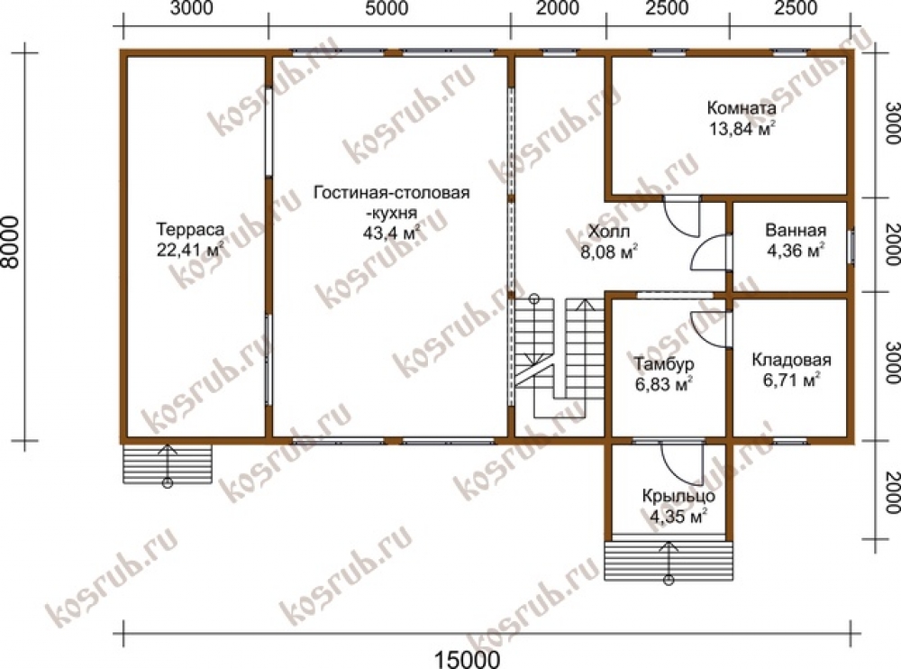 Проект одноэтажного дома Дом из бруса ДБ-59 проект Рублевка