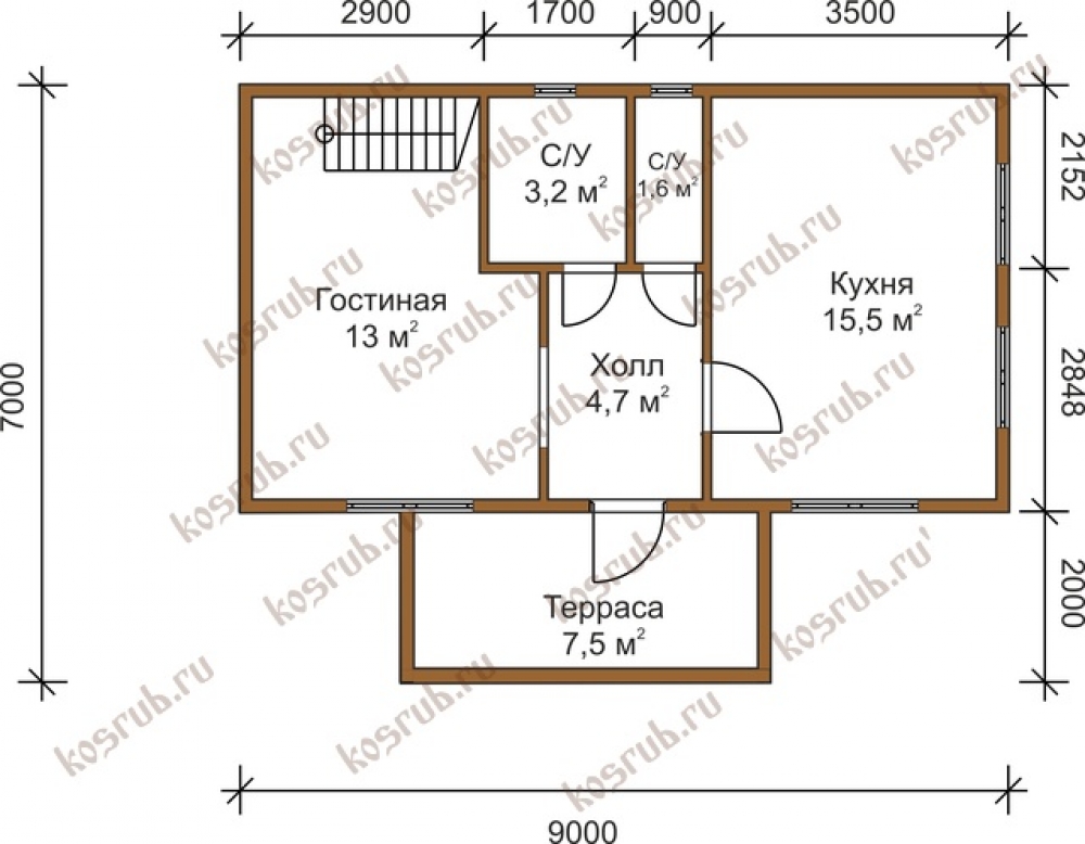Проект одноэтажного дома Дом из бруса ДБ-63 проект Бюджетный
