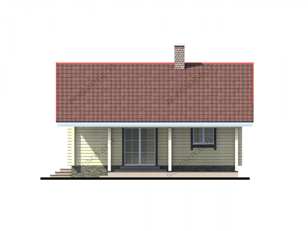 Дом с системой очистки воздуха во всех комнатах. 58 м² вмещают всё необходимое без излишеств. Ондулин придаёт дому выразительность и надёжность. Дом спроектирован в духе дома в классическом стиле. Выбор Бруса обусловлен его теплоизоляционными свойствами.Характеристики