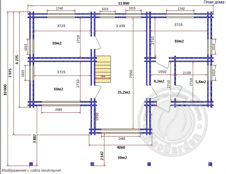 Проект двухэтажного дома Дом из бруса Эдельвейс