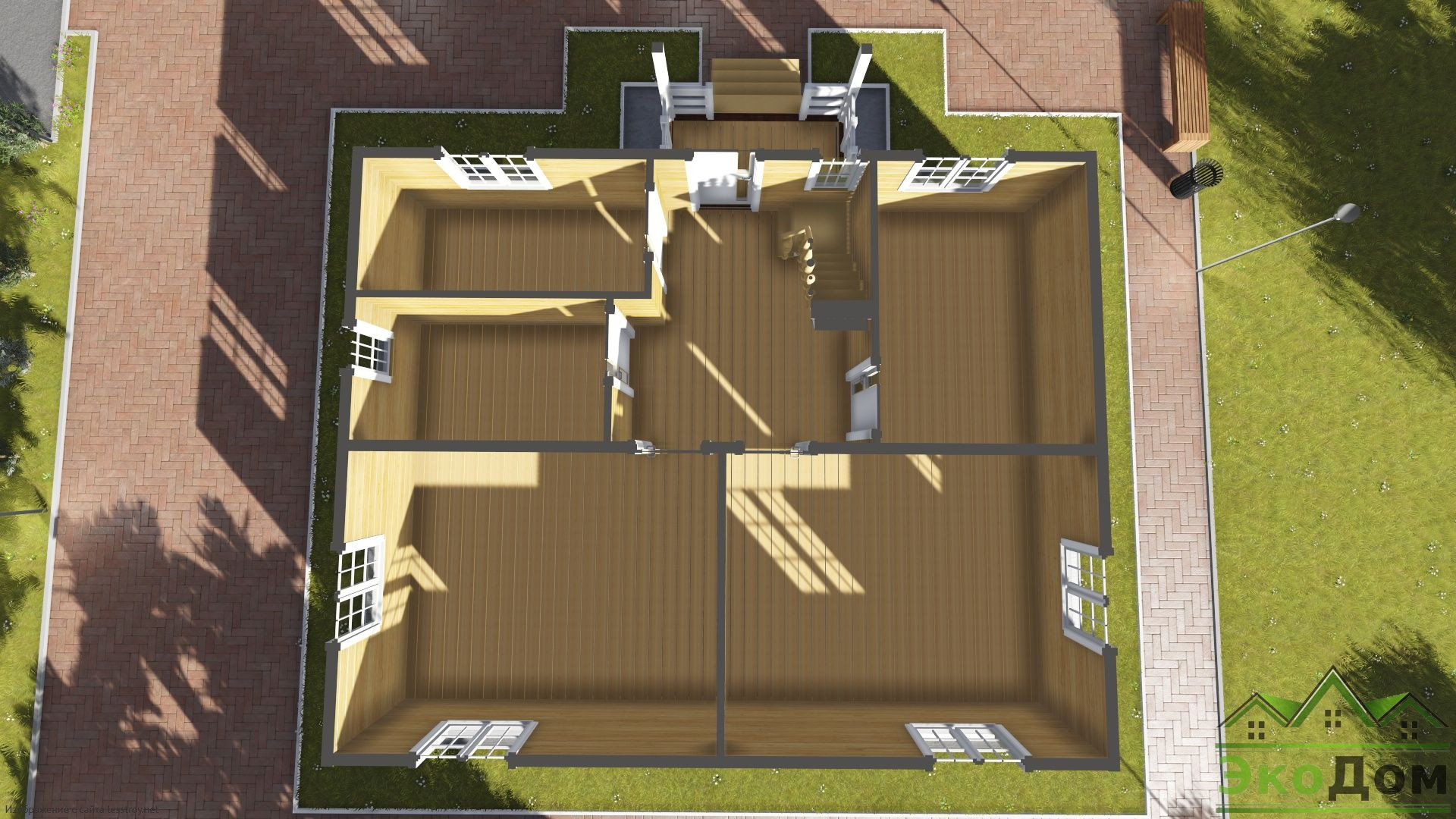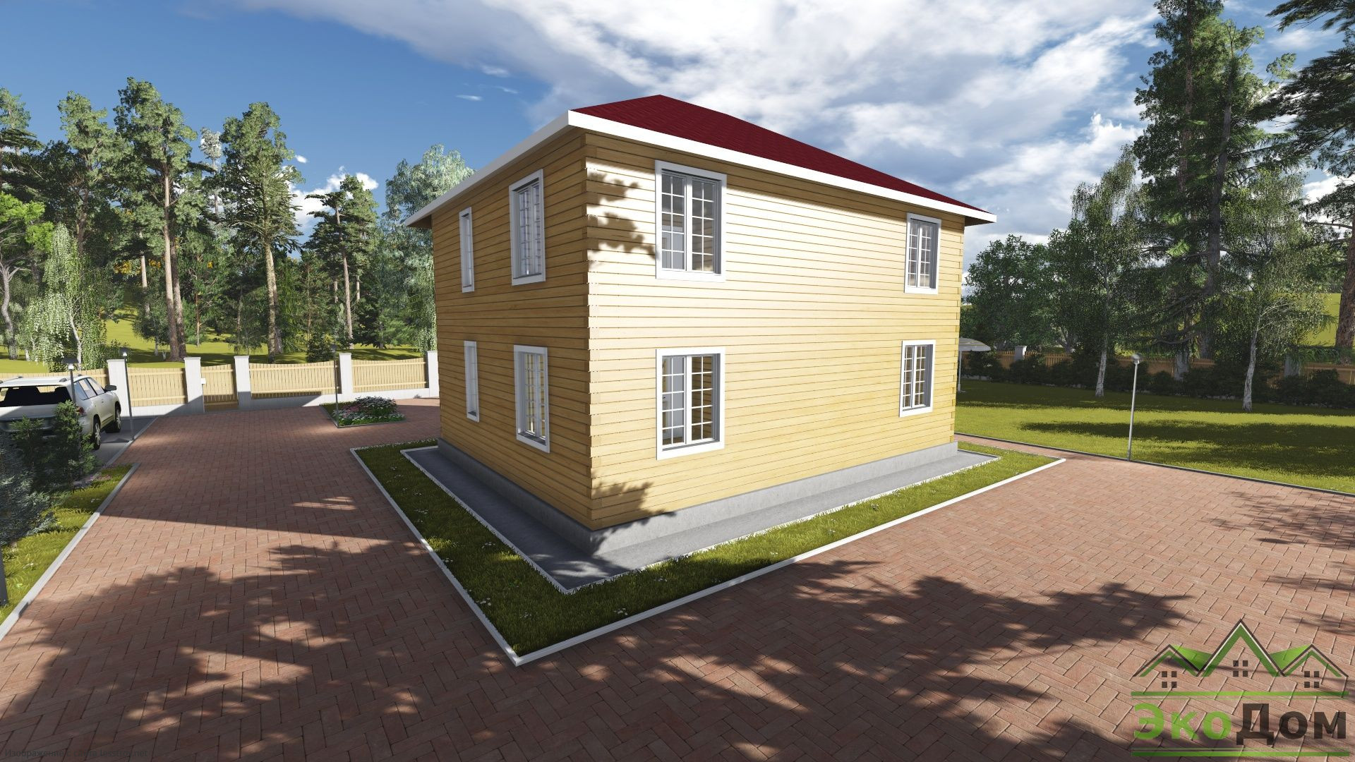 - Тип кровли: Дома с четырехскатной крышей (вальмовой)