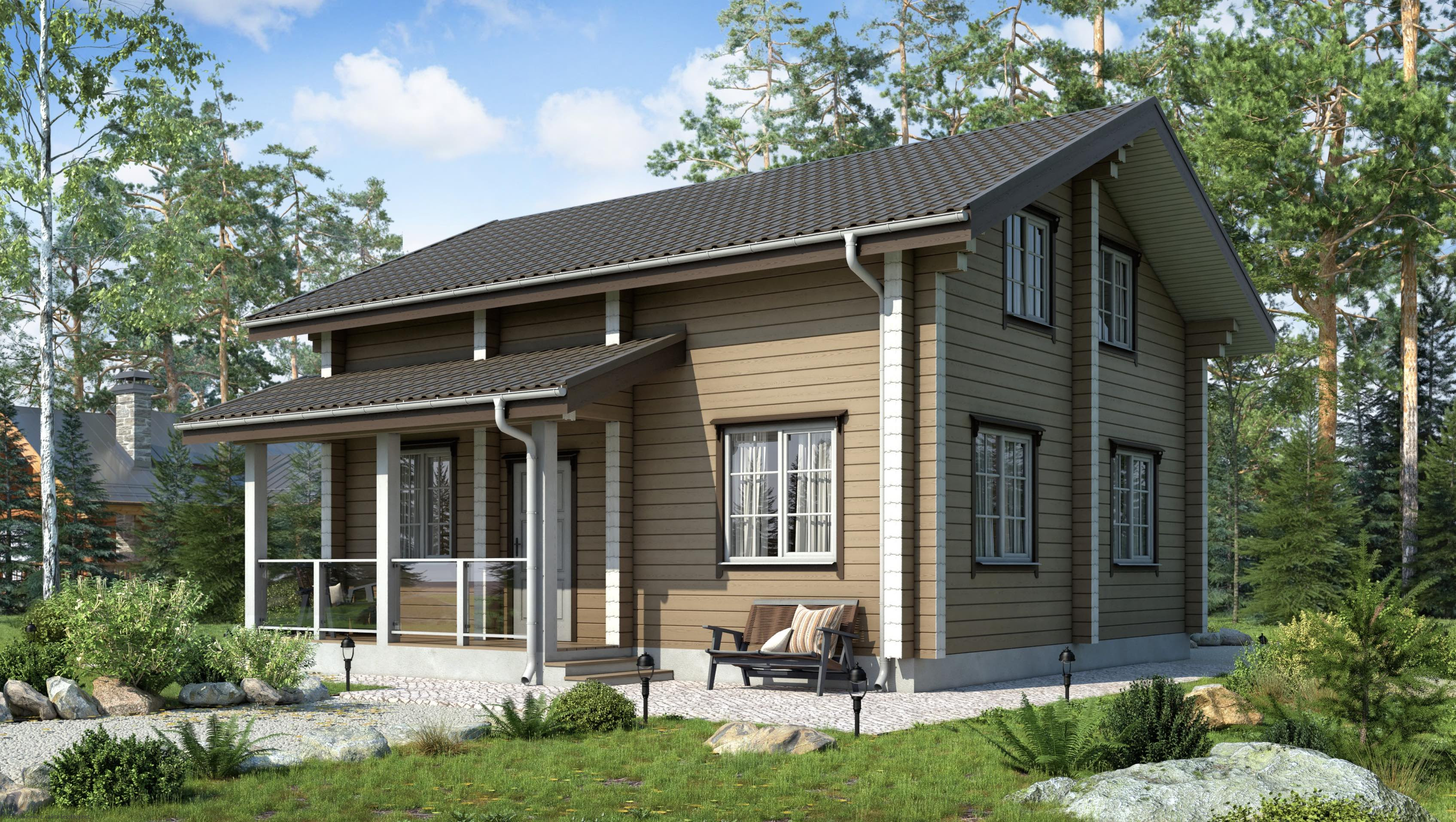 Архитектура, где даже технические коммуникации становятся элементом дизайна. Баланс функциональности и уюта в 130 м². Дом спроектирован в духе дома в стиле русский. Выбор Бруса обусловлен его теплоизоляционными свойствами. В качестве кровли использована металлочерепица — материал, проверенный временем.Характеристики