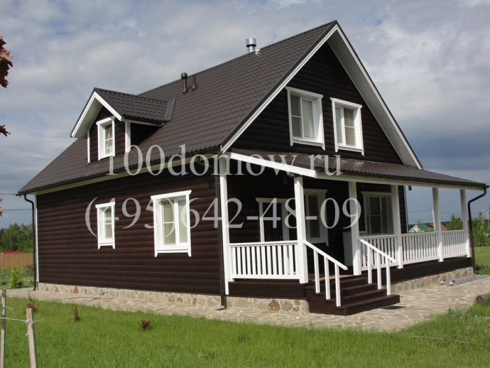 Проект двухэтажного дома Дом из бруса с большой террасой. Проект Троицк