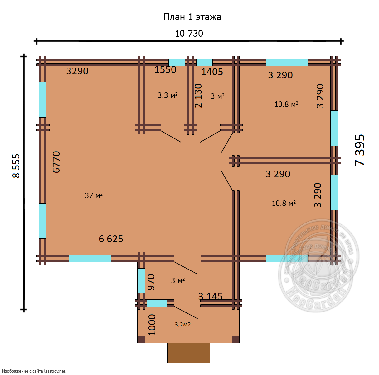 Проект одноэтажного дома Дом из двойного мини-бруса Санта-Фе