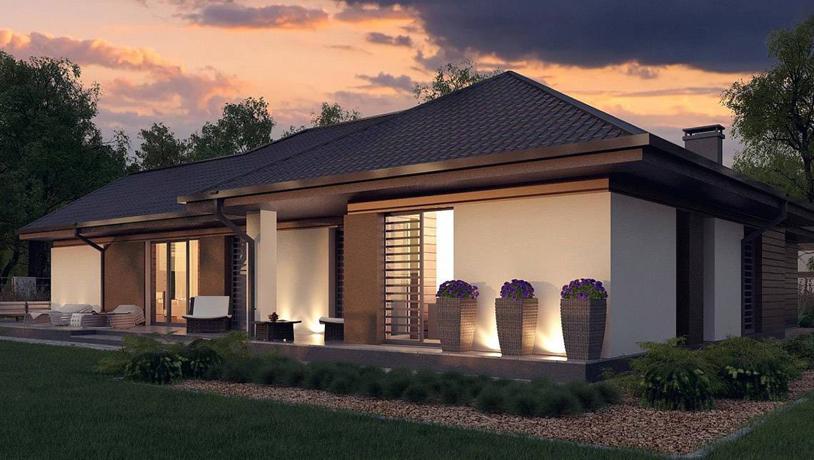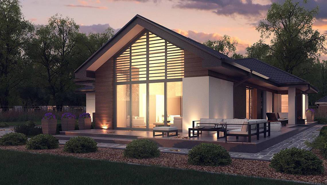 Проект одноэтажного дома Дом из газобетона с панорамными окнами Сингапур