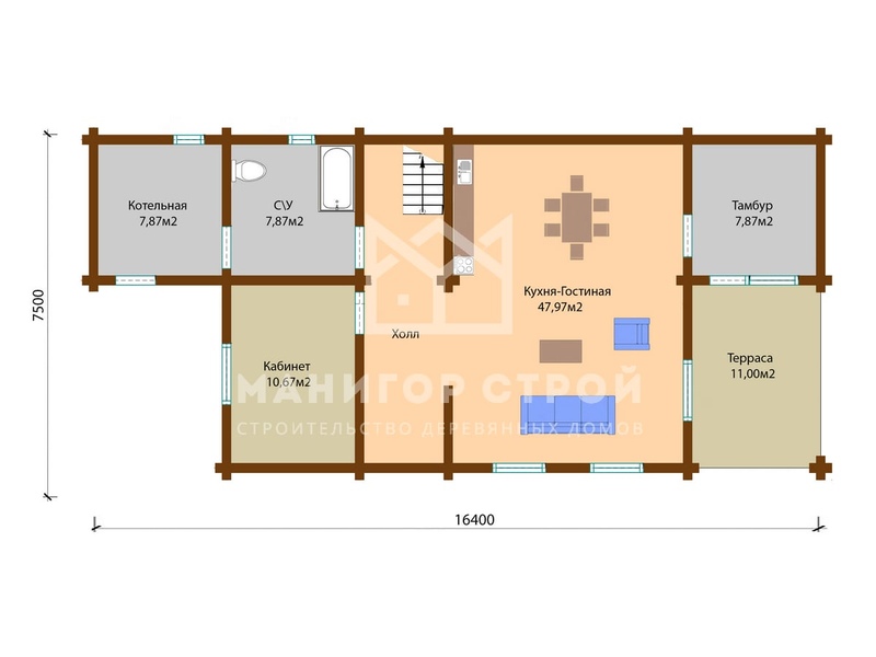 Проект двухэтажного дома Дом из клееного бруса КБ-15