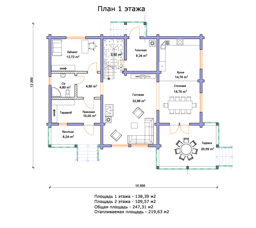 Интерьеры, где нет мертвых зон - каждый сантиметр работает.Жить в 247 м² — это удобно, красиво и рационально. В качестве кровли использована композитная черепица — материал, проверенный временем. Выбор Бруса обусловлен его теплоизоляционными свойствами. Двухэтажная эргономичная планировка разграничивает спальные и дневные помещения.Характеристики