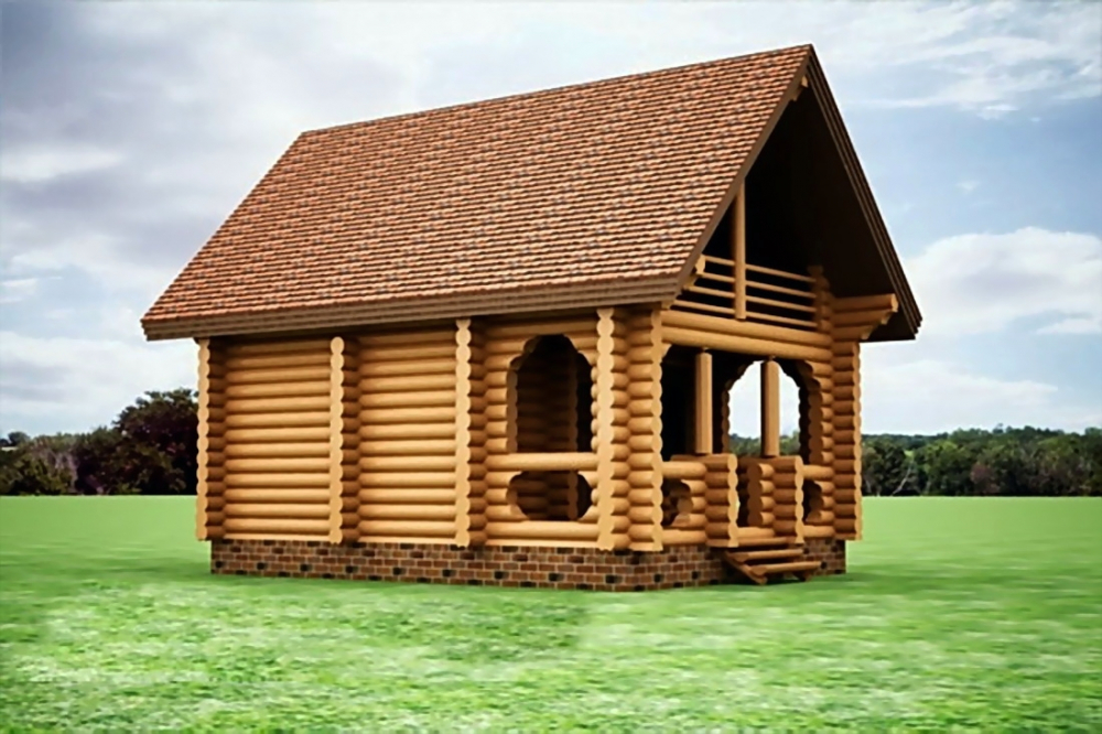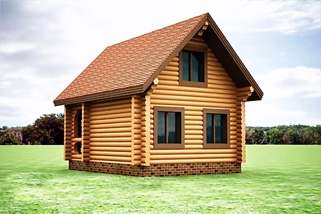 Проект двухэтажного дома Дом с мансардой из оцилиндрованного бревна СКАЗКА - 78м2 (7м х 5,5м)
