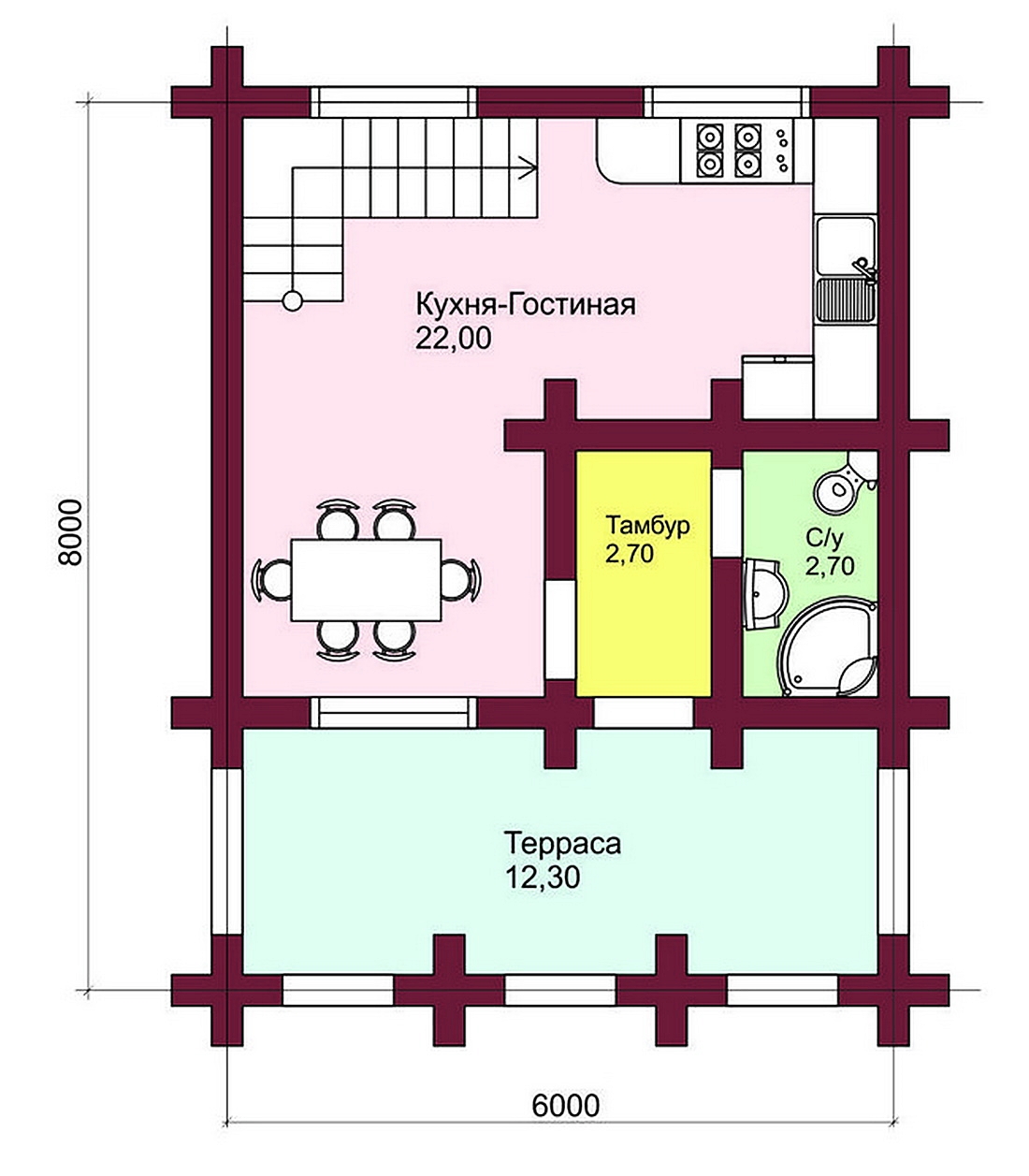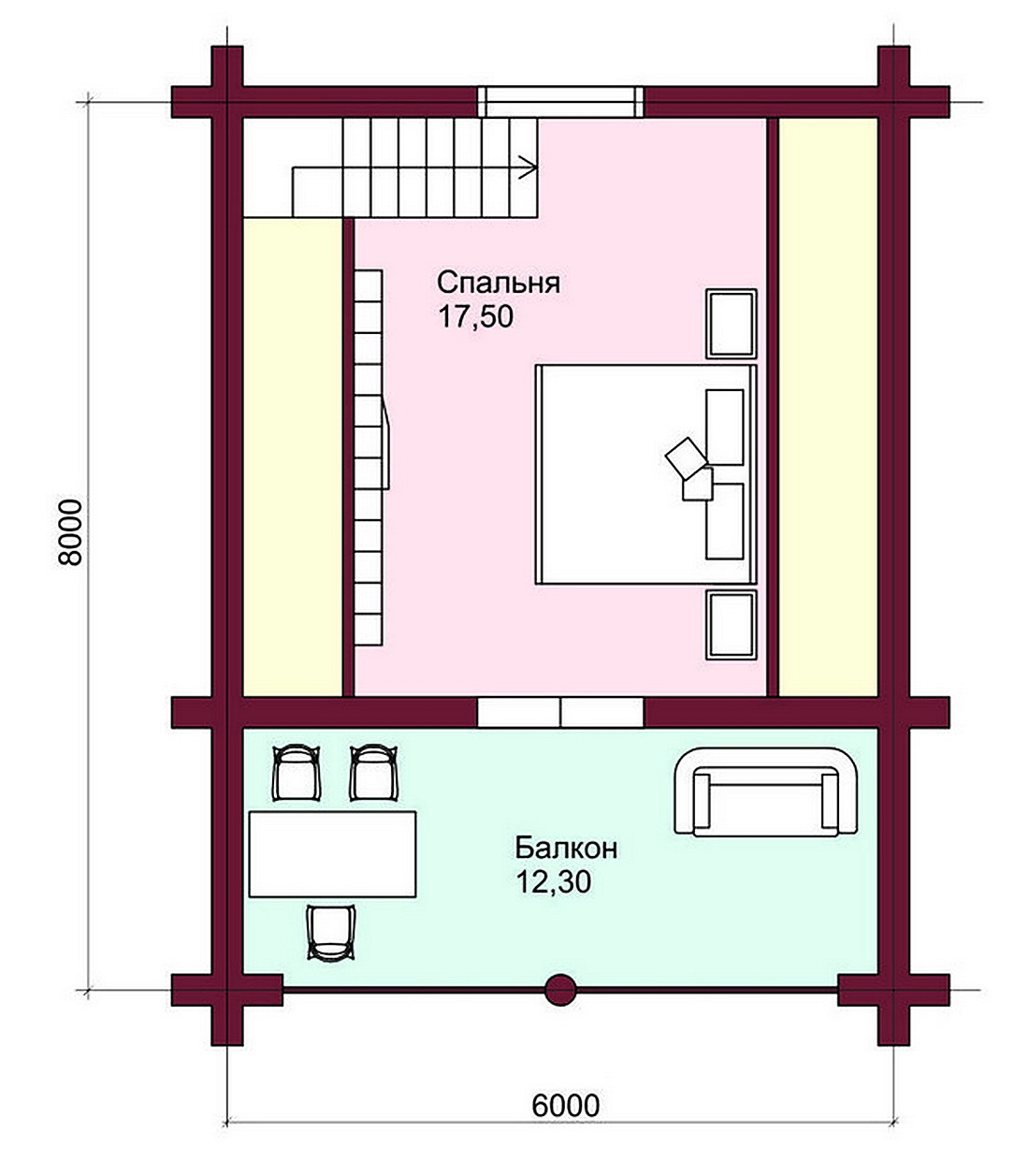 Проект двухэтажного дома Дом из оцилиндрованного бревна 6000х8000 мм
