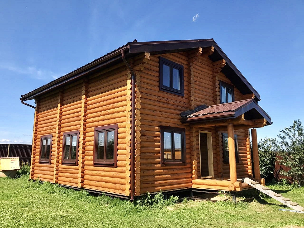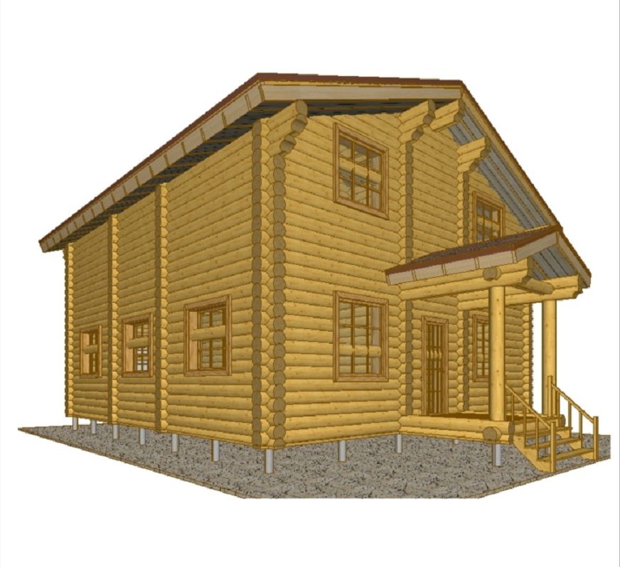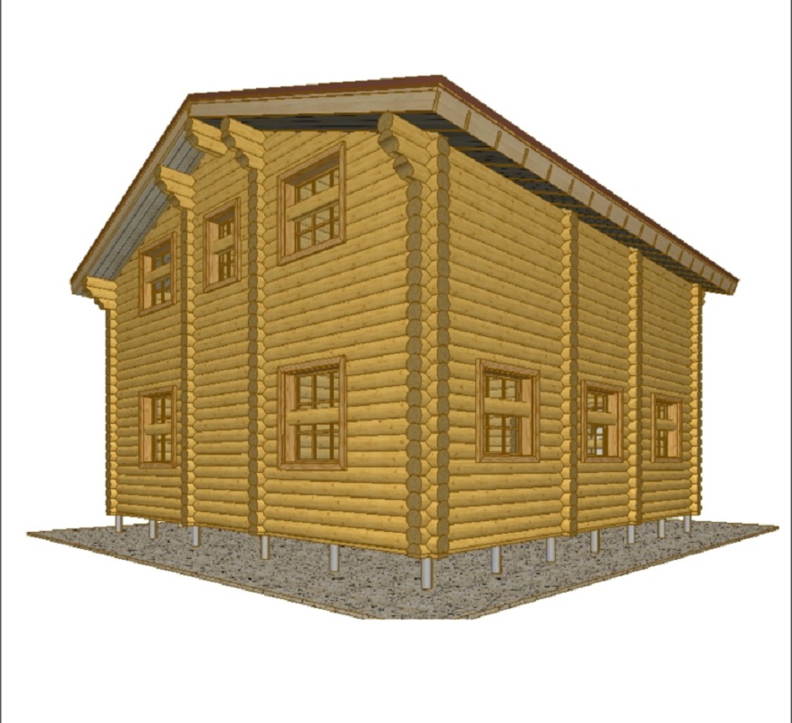 Проект двухэтажного дома Дом из Оцилиндрованного бревна, 9000х9000 мм