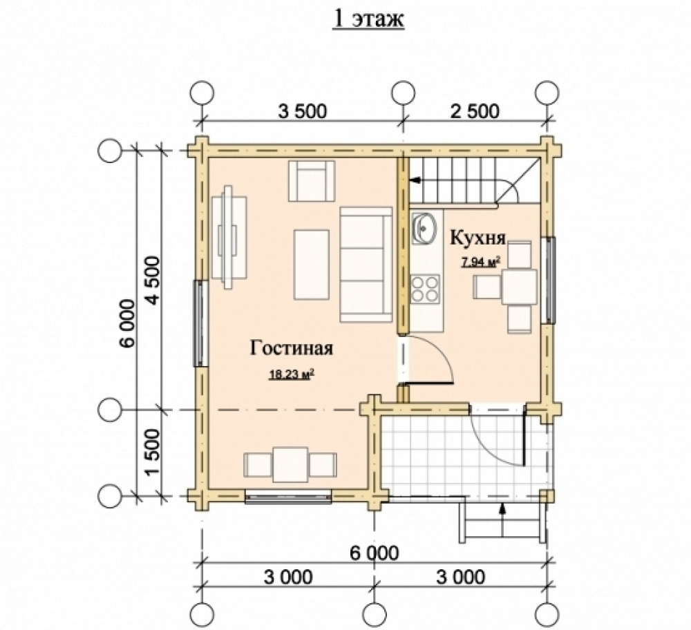 Проект двухэтажного дома Дом из оцилиндрованного бревна Б-58