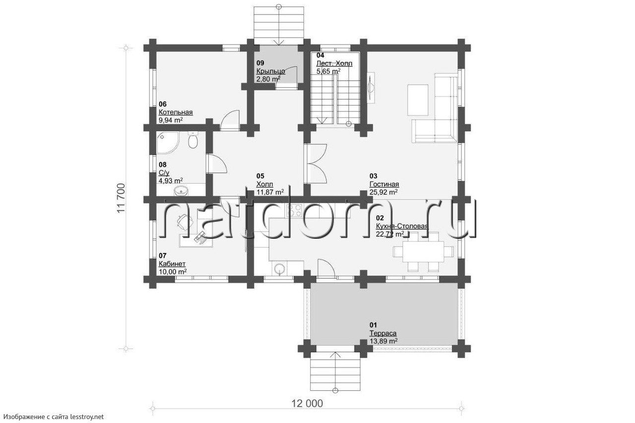 Бревенчатый дом площадью 195 м² сочетает в себе rustic-шарм и современные технологии. Массивные стены из дерева создают уют и защищают от непогоды. Просторные комнаты с высокими потолками добавляют ощущение свободы. Это проект для тех, кто хочет жить в гармонии с природой.Характеристики