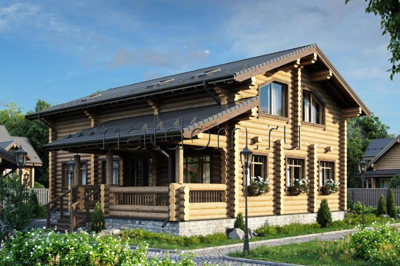 Проект двухэтажного дома Дом из оцилиндрованного бревна ДК-195