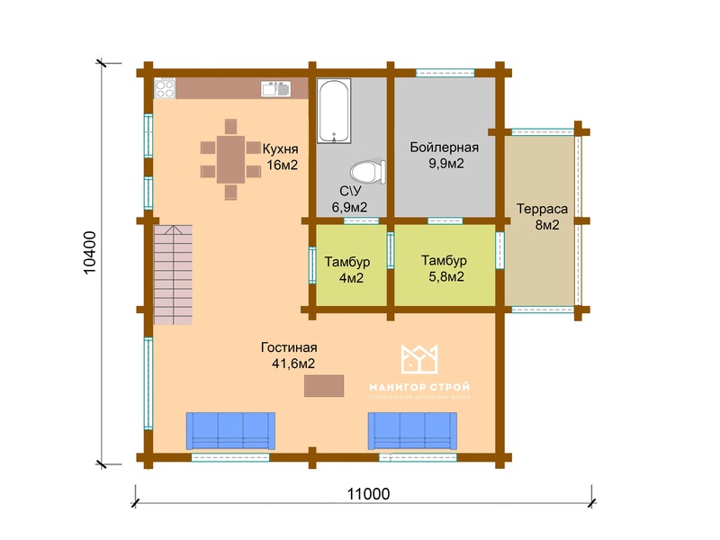 Инженерные решения, подчеркивающие стилевую концепцию.84 м² — это возможность разделить пространство на зоны по интересам. Бруса делает дом надёжным при любой погоде. Наличие 2 спальни удовлетворит запросы семьи с детьми. Двухэтажная эргономичная планировка обеспечивает комфортную навигацию внутри дома.Характеристики