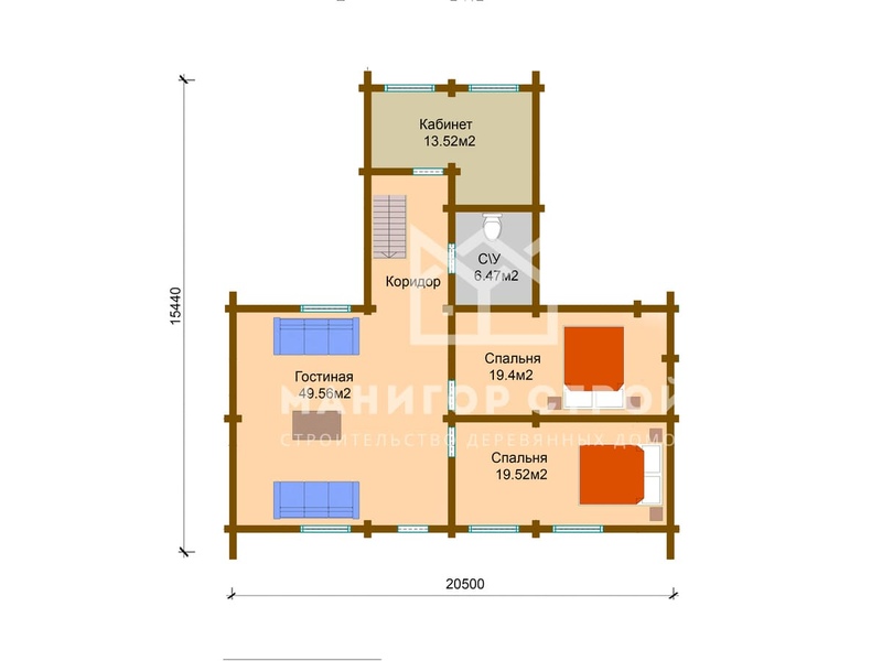 Проект двухэтажного дома Дом из оцилиндрованного бревна ОЦБ-24