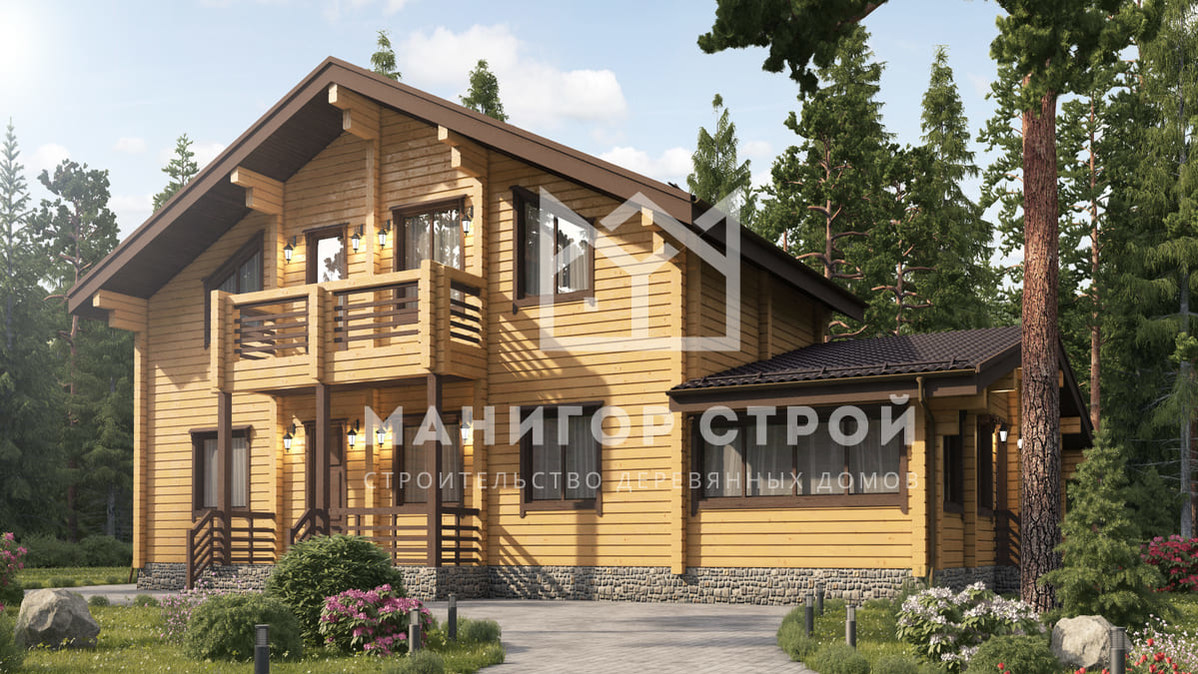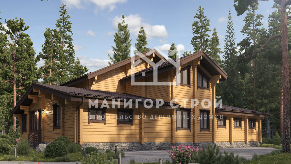 Проект, в котором будущее уютно, как бабушкин плед.С такими 333 м² возможна любая конфигурация комнат. Конструкция из бревна обеспечивает прочность и долговечность. Двухэтажная современная планировка обеспечивает комфортную навигацию внутри дома. В качестве кровли использована рубероид — материал, проверенный временем.Характеристики