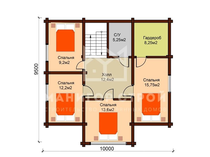 Проект двухэтажного дома Дом из оцилиндрованного бревна ОЦБ-4