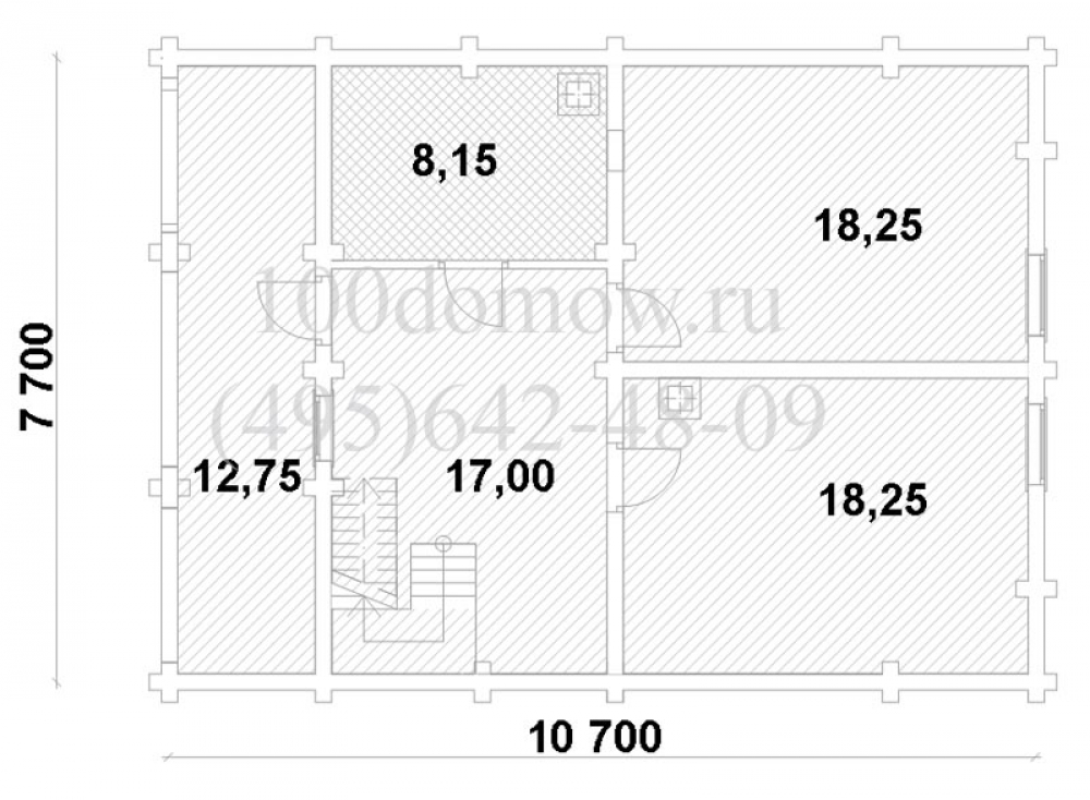 Проект одноэтажного дома Дом из оцилиндрованного бревна. Проект Серпухов.
