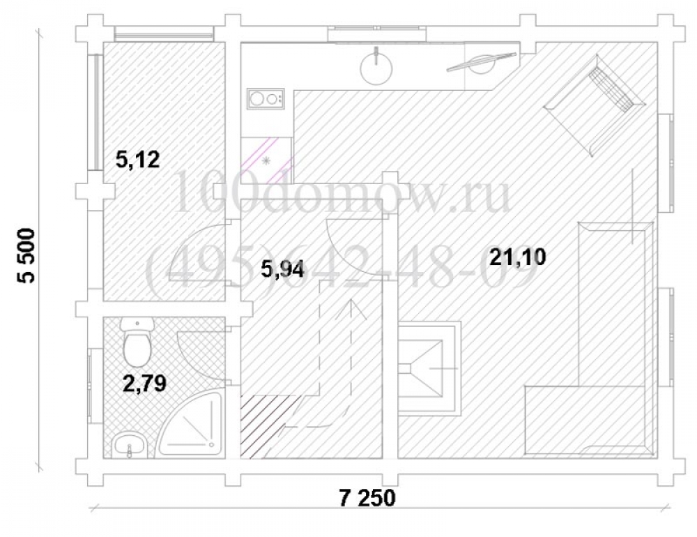 Проект одноэтажного дома Дом из оцилиндрованного бревна с мансардой. Проект Звенигород