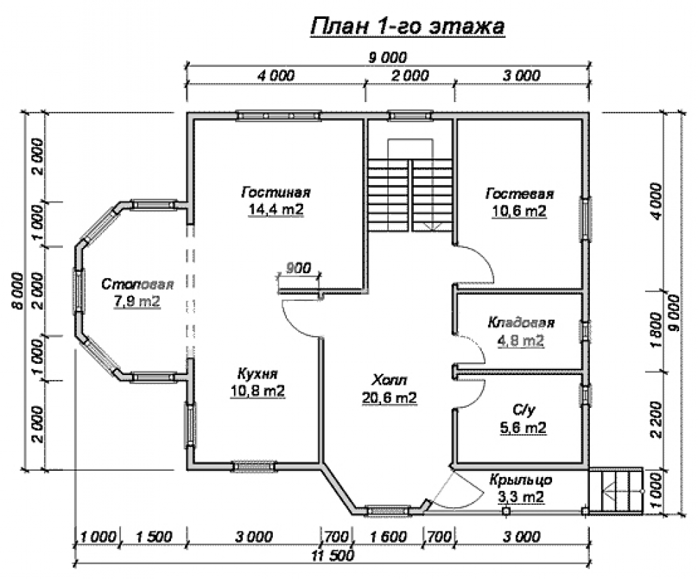 Проект одноэтажного дома Дом из профилированного бруса 11,5 х 8